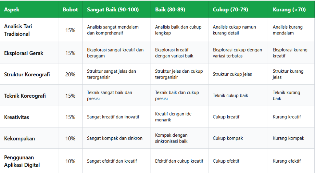- Siswa dapat menyusun koreografi tari dengan struktur yang baik